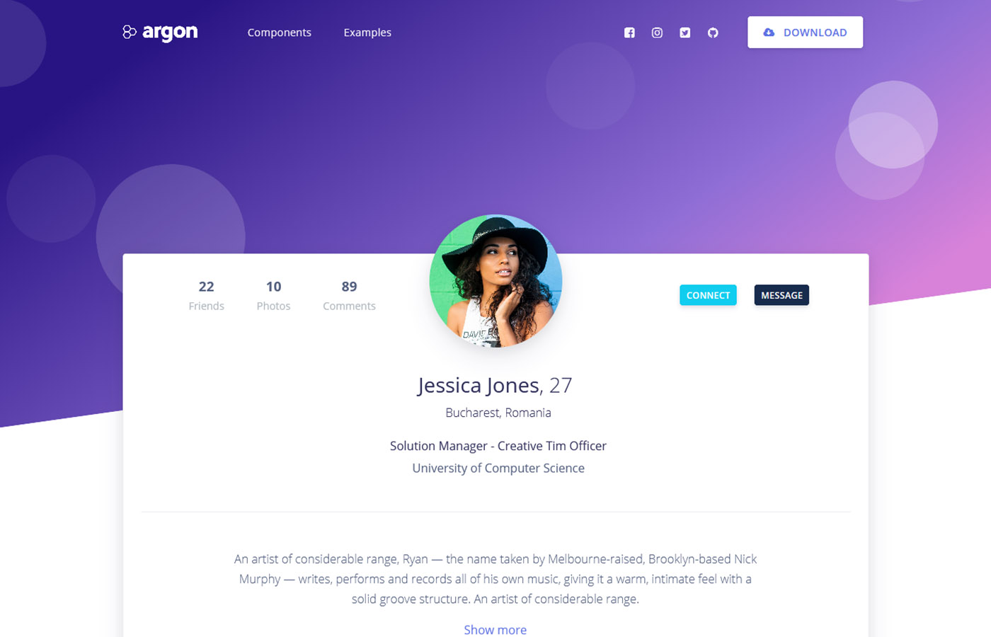 Argon is a great free UI package based on Bootstrap 4 that includes the most important components and features.