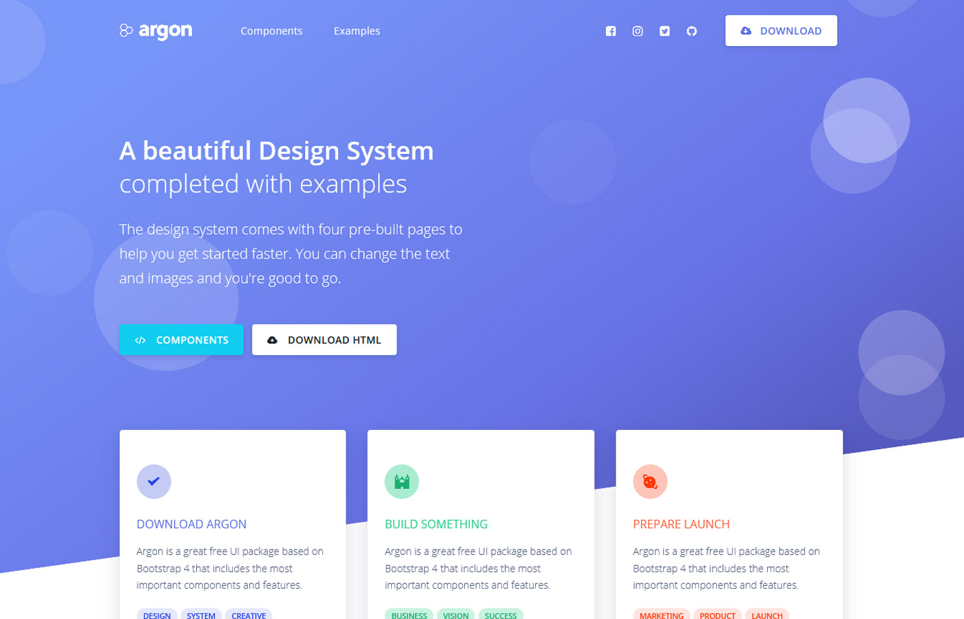 Argon is a great free UI package based on Bootstrap 4 that includes the most important components and features.